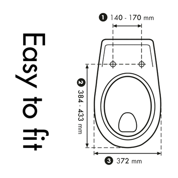 En raison de l'ajustement des charnières, ce siège de toilette peut être adapté à la plupart des cuvettes de toilette courantes en forme de D. Nous recommandons de bien étudier le dessin au trait afin de vous assurer que le siège s'adapte parfaitement à votre cuvette. Enfin, avec le système de montage bien réfléchit 'Fastfix', vous pouvez facilement monter le siège de toilette par le bas.