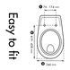En raison de l'ajustement des charnières, et de sa forme ovale ce siège de toilette peut être adapté à la plupart des cuvettes de toilette courantes ovales. Nous recommandons de bien étudier le dessin au trait afin de vous assurer que le siège s'adapte parfaitement à votre cuvette. Enfin, avec le système de montage bien réfléchit 'Fastfix', vous pouvez facilement monter le siège de toilette par le bas.