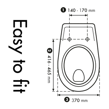 En raison de l'ajustement des charnières, et de sa forme ovale ce siège de toilette peut être adapté à la plupart des cuvettes de toilette courantes ovales. Nous recommandons de bien étudier le dessin au trait afin de vous assurer que le siège s'adapte parfaitement à votre cuvette. Enfin, avec le système de montage bien réfléchit 'Fastfix', vous pouvez facilement monter le siège de toilette par le bas.