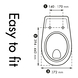 En raison de l'ajustement des charnières, ce siège de toilette peut être adapté à la plupart des cuvettes de toilette courantes en forme de D. Nous recommandons de bien étudier le dessin au trait afin de vous assurer que le siège s'adapte parfaitement à votre cuvette. Enfin, avec le système de montage bien réfléchit 'Fastfix', vous pouvez facilement monter le siège de toilette par le bas.