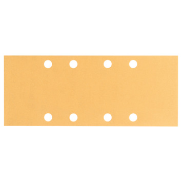 Jeu de 10 feuilles de papier abrasif 93 x 230 mm, 180. Pour le ponçage de toutes essences de bois, bois dur, panneaux d’aggloméré, panneaux de construction et métal. Pour ponceuses vibrantes Bosch, Atlas Copco, Black+Decker, Einhell, Festo/Festool, Makita, Metabo, Peugeot, RYOBI, Skil.