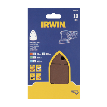 Abrasif delta G40/G80/G120/G180 autocollant Irwin pour Bosch PSM, Skil, Lux, Metabo 10 pièces