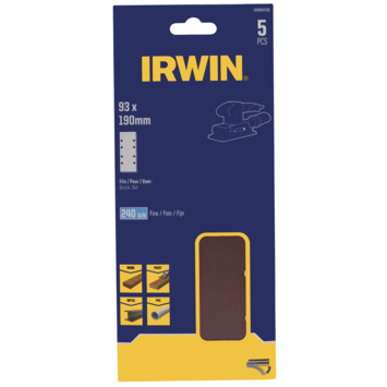 Abrasif perforé 190x93 mm G240 autocollant Irwin pour Bosch, Skil, GAMMA, Makita, Metabo 5 pièces