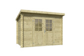 L'abri de jardin Finn 450x250 a les mesures de fondation de 450 cm (l) x 250 cm (p). Les planches murales en sapin massif non traités de 28 mm d'épaisseur sont équipées de rainures et languettes. La méthode de construction empilée, combinée aux poteaux d'angle et au système de vis, garantit une construction très solide. Cet abri de jardin simple et compact avec sa double porte sans vitrage est particulièrement adapté comme espace de rangement pour votre matériel de jardin. Le paquet de base comprend un manuel d'installation clair, une liste de pièces et bien sûr tout le matériel de montage nécessaire, comme les ferrures de porte. Pour profiter longtemps de votre abri de jardin, il est recommandé d'acheter un pack toiture EDPM pour garantir l'étanchéité. Le système avec planches à emboîter peut être facilement assemblé par le bricoleur quelque peu habile. Cet abri est livré chez vous sous forme de kit à monter.