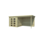 L'abri de jardin a une double porte vitrée, de sorte que vous ayez beaucoup de lumière pendant la journée. La fenêtre à l'avant fournit également un éclairage supplémentaire. Vous pouvez fermer les portes en toute sécurité avec la serrure à cylindre fournie. Le toit plat est en pente très légère avec un petit surplomb pour le drainage. Un revêtement de toit en EPDM est conseillé pour que l'abri de jardin soit étanche. Avec les toits plats, il est possible de placer une couche supplémentaire de bitume au sommet du toit pour garantir que l'abri de jardin est également protégé contre l'eau pendant une plus longue période.