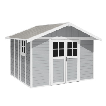La gamme Deco de Grosfillex propose de jolis abris de jardin au design élégant pour y travailler et ranger vos outils. Celui-ci est en PVC gris foncé avec une finition blanche et des fenêtres métalliques. Le PVC est un plastique de grande qualité facile à entretenir et qui n'offre aucune prise à la pourriture ou aux champignons. Les portes robustes comprennent une fenêtre, une poignée et une solide serrure. Ce modèle propose une surface de presque 11 mètres carrés.