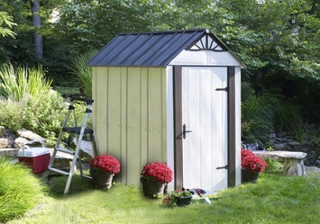 Arrow Designer Metro (104) est un abri de jardin unique de couleur ivoire équipé d'une porte battante. Cet abri métallique est garanti 15 ans. Idéal si vous voulez ranger votre matériel de jardin de façon compacte mais élégante.