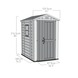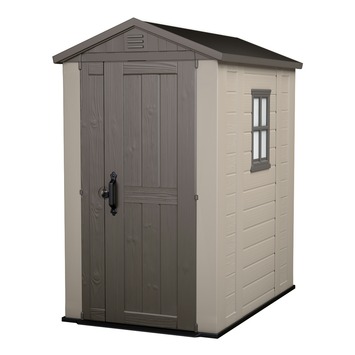 L'abri de jardin Factor 46 de Keter est en plastique et renforcé de profilés en aluminium. Les deux portes à large ouverture et le sol en pente assurent un accès facile. L'abri de jardin Factor est équipé de grilles de ventilation, d'une fenêtre et d'une partie de toit transparente pour la lumière naturelle. L'abri de jardin est idéal pour ranger les tondeuses à gazon, les vélos, les scooters, les meubles de jardin, les jouets pour enfants et bien d'autres articles. L'abri de jardin est sans entretien, résistant aux intempéries et facile à monter. Les portes sont verrouillables avec un cadenas (cadenas non inclus).