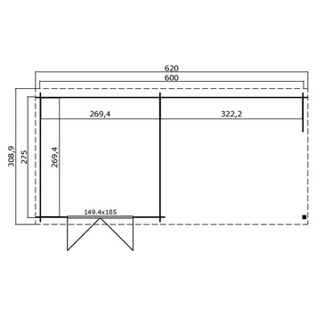 L'abri en bois avec auvent Novia est composé de planches de sapin nordique nord-européen imprégnées par immersion en vert. Dimensions extérieures de la cabane de 275 sur 275 centimètres, 600 sur 275 auvent compris. Le toit en pente vers l'arrière et la double porte vitrée jusqu'en bas rendent cette cabane de jardin idéale comme rangement ou atelier de bricolage annexe abri couvert pour profiter pleinement du jardin, bien protégé du vent et du soleil. Le toit en roofing, pentures, vitrage synthétique et notice de montage sont compris. Avec votre abri, commandez le plancher et la gouttière qui sont livrables en option. Également livrable non traité et imprégné par immersion en brun.