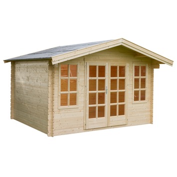 L’abri de jardin Ribes est une chouette cabane fabriquée en épicéa. L’abri a un toit à deux versants recouvert de carton bitumé, qui ne nécessite pas d’entretien et offre une protection optimale contre la pluie. L’entrée et la fenêtre de la cabane sont également parfaitement protégées contre les intempéries. L’abri de jardin est livré avec toutes les poignées et ferrures nécessaires, ce qui vous permet de le monter très rapidement.