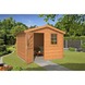 L'abri en bois Rose est une cabane de jardin composée de planches de sapin nordique nord-européen imprégnées par immersion en brun, dimensions extérieures de 275 sur 230 centimètres. Le toit à deux versants, la porte simple et une fenêtre sur l'avant rendent cette maisonnette de jardin idéale comme rangement ou atelier de bricolage. Le toit en roofing, pentures, vitrage synthétique et notice de montage sont compris. Avec votre abri, commandez un plancher et un ensemble gouttières qui sont livrables en option. Également livrable en profondeur 275 cm et non traitée ou imprégné par immersion en vert.