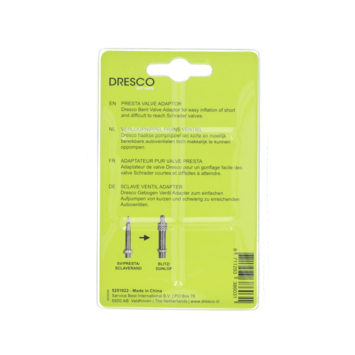 Avec cet adaptateur Dresco pour valve Presta, vous pouvez gonfler un pneu équipé d’une valve Presta avec une pompe de vélo standard. Ouvrez la valve Presta et vissez l’embout de l’adaptateur Dresco sur la valve Presta. Gonflez le pneu, retirez l’adaptateur et fermez la valve Presta. Les adaptateurs sont livrés par paire.