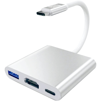 Tirez le meilleur parti de tous vos appareils avec l'adaptateur USB-C 3 en 1 Carpoint avec HDMI et une connexion USB-A et Type C. L'adaptateur USB-C transforme l'entrée USB-C en port USB-A bien connu, en port HDMI et en port de chargement USB-C.