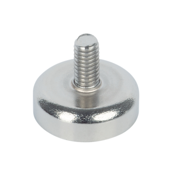 Aimants Néodyme dans un boîtier en acier fileté. Le boîtier en acier renforce l'adhérence de l'aimant à la surface de fixation, tandis que les côtés fermés sont protégés. Le filetage permet de fixer à l'aimant des accessoires dotés d'un filetage approprié (par exemple, des écrous).