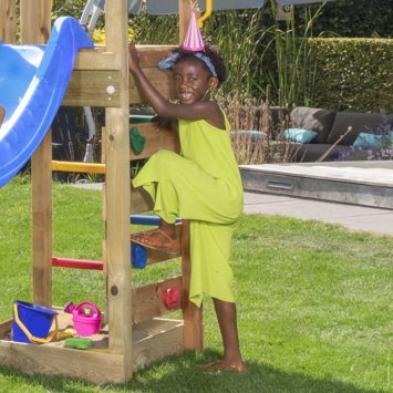 Le bac à sable, mur d'escalade, volant, téléscope, connecteur tuyau vers toboggan et autres qui sont inclus garantissent du bon temps tout au long de l'été.
