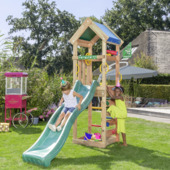 Aire de jeux Jungle Gym Patio en pin avec toboggan bleu