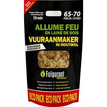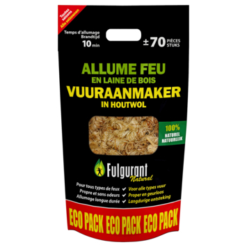 Les allume-feu écologiques en laine de bois de Fulgurant sont idéaux pour allumer tous les types de feu. De plus, ils assurent une inflammation propre, inodore et durable. Ce pack écologique contient 65-70 pièces.
