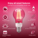 Cette ampoule de verre a une puissance lumineuse élevée de 806 lumen. Cette ampoule intelligente fournit ainsi une belle lumière blanche chaleureuse, diffuse et fonctionnellement claire.