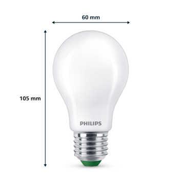 Cette ampoule LED mate Philips green label 4W (60W) en forme de poire et à label énergétique A, est l'ampoule la plus performante et la plus économe en énergie de Philips. Avec une consommation d'énergie réduite de 50% et une durée de vie 3,5 fois plus longue qu'une ampoule LED ordinaire, vous allez réduire encore davantage votre facture d'énergie. Comme cette ampoule a une durée de vie exceptionnelle jusqu'à 50 ans, moins de matériaux sont gaspillés. C'est votre contribution à un meilleur climat. Le LED, ça aide !