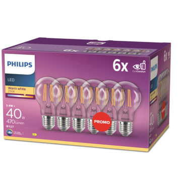 Ampoule poire LED Philips E27 3,4 W 2700 K filament 6 pièces