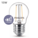 Ampoule sphérique LED à filament Philips E27 translucide 15 W blanc chaud