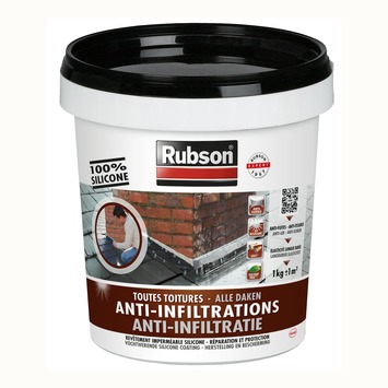 Anti-Infiltration toutes toitures Rubson (1 kg) est un revêtement élastique d’étanchéité en silicone pour toits, fondations ou supports enterrés, qui répare et protège durablement contre les UV, les fuites et les fissures.