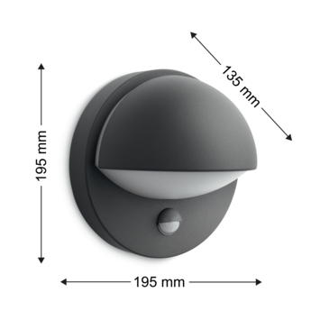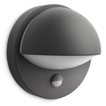 L'applique Philips June en teinte anthracite équipée d'un détecteur de mouvement s'allume automatiquement lorsque quelqu'un passe à proximité. Sa forme gracile donne à chaque environnement extérieur une touche de modernité. Cette applique en aluminium à soquet E27 est certifiée IP44 et résiste à toutes les conditions climatiques grâce aux matériaux haute qualité. L'éclairage extérieur Philips est facile à installer grâce à la clé de montage fournie. Ampoule non fournie.