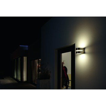 Philips propose des armatures de luminaires pour chaque espace. Les luminaires d'extérieur de la série Ecomoods se composent de modèles contemporains et durables comme cette applique Hazel avec ampoule économique de 20 W. Modèle arrondi en inox.