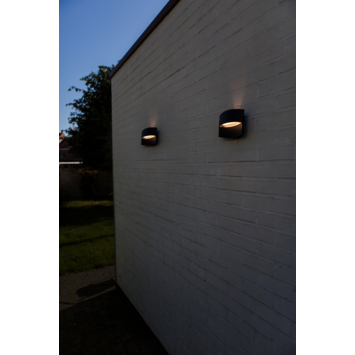 Le module LED intégré de 8,5 watts diffuse une lumière blanche chaude vers le haut et vers le bas, créant ainsi un bel effet lumineux sur le mur. Cela rend la lampe non seulement fonctionnelle, mais aussi atmosphérique. Le boîtier est en aluminium et doté d'une fenêtre en plastique qui permet une diffusion douce et uniforme de la lumière. Avec sa classification IP54, la lampe est résistante à la pluie et à la poussière. La Lotus est une forte combinaison de design, d'ambiance et de praticité au quotidien.
