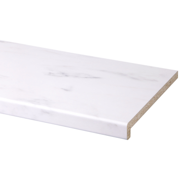 Cet appui de fenêtre décoratif (de recouvrement) Cando aspect marbre ivoire 302x29 cm au nez angulaire a une base en aggloméré avec une couche supérieure résistante aux rayures (CPL).