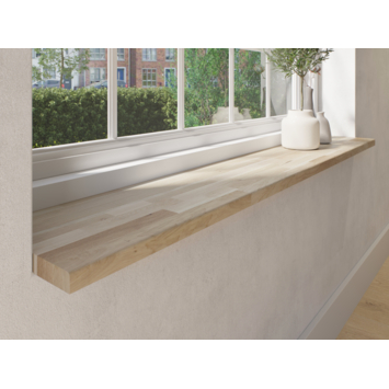 Un appui de fenêtre entièrement réalisé en chêne massif présente une variété naturelle de couleurs. Cet appui de fenêtre peut être verni ou laqué dans n'importe quelle couleur transparente. Comme le panneau est massif et donc constitué de plusieurs lamelles collées, le bois est moins susceptible de se déformer. Le panneau a une épaisseur de 27 mm et est arrondi sur un grand côté (rayon 6), ce qui confère à l'appui de fenêtre un aspect élégant. Le bois est certifié FSC et provient donc de forêts gérées durablement.