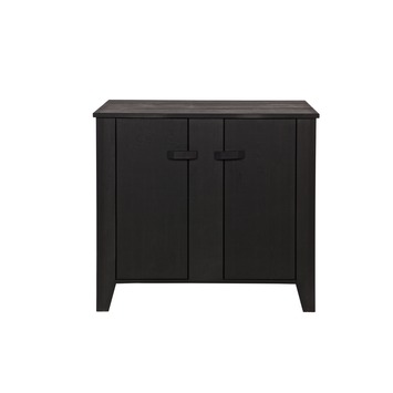 Rangez tous vos petits objets dans cette armoire basse Brent avec fermeture originale. L’armoire a 2 portes et 1 rayon sur lequel vous pouvez disposer ce que vous voulez. L’armoire est fabriquée en pin massif verni en noir. Très joli dans un salon ou une chambre à coucher. Combinez deux armoires de la même couleur pour encore plus d’espace de rangement.
