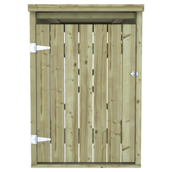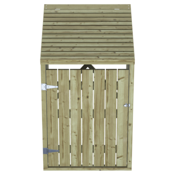 Cette armoire convient pour ranger proprement une poubelle à roulettes. Le rangement clicko est fait d'un bois d'épicéa raboté et imprégné. Parce que le bois est imprégné, le meuble reste mieux protégé contre l'eau et les moisissures. De cette façon, vous pouvez continuer à profiter de votre armoire plus longtemps. L'armoire offre de la place pour 1 poubelle.