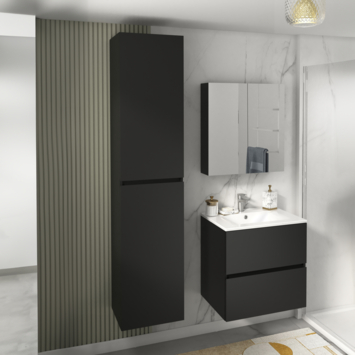 L'ensemble de meuble de salle de bain DONNA avec meuble miroir donne une touche moderne à votre salle de bain et vous apporte un espace de rangement supplémentaire.