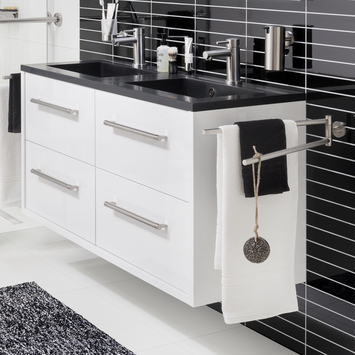 L'armoire colonne Tiger Boston est à la fois puissante et élégante et la belle poignée ronde est confortable à tenir. Cette large armoire à colonne offre beaucoup d'espace pour ranger tous les articles de salle de bain de manière ordonnée. Le meuble est équipé de 4 étagères blanches dont 2 réglables en hauteur. La porte peut être montée à gauche comme à droite et est équipée de charnières "soft-close" de haute qualité pour une fermeture silencieuse.