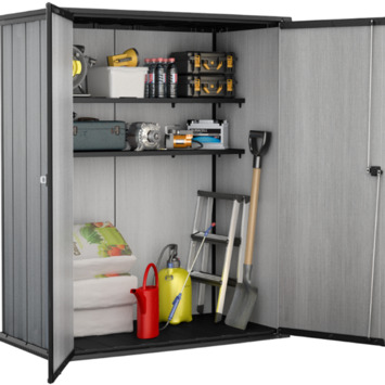 Vous cherchez une armoire élégante, pratique et résistante pour la terrasse, le balcon, le jardin ou le garage ? L’armoire de rangement High Store Plus de Keter est un moyen simple et rapide de créer un espace de rangement pour votre matériel d’extérieur ou vos outils. Sa structure en polypropylène brossé aspect bois de coloris gris est traitée anti UV et résiste aux intempéries. Elle s'ouvre par l'avant et l’accueil est incliné pour faciliter l’accès aux articles avec roues. Le plancher robuste est adapté au stockage d'articles lourds tels que les barbecues et les tondeuses à gazon. Ses portes peuvent être verrouillées à l'aide d'un cadenas standard (non inclus). Après la livraison, l'armoire de rangement Keter High Store Plus peut être assemblée immédiatement, à condition qu'une surface plane ait été préparée.