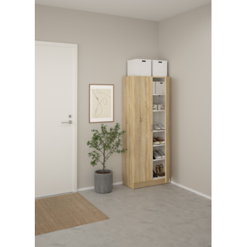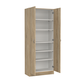 Compacte et polyvalente, l'armoire 2 portes 5 tablettes Fabian est la solution parfaite si vous êtes à la recherche de plus d'espace de rangement. Pratique pour pour chaque pièce de la maison car sa couleur chêne s'associe parfaitement aux autres meubles ou décorations. Avec ses dimensions de (hxlxp) 170x70x35 cm elle ne prend qu'un minimum de place.
