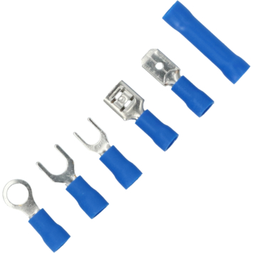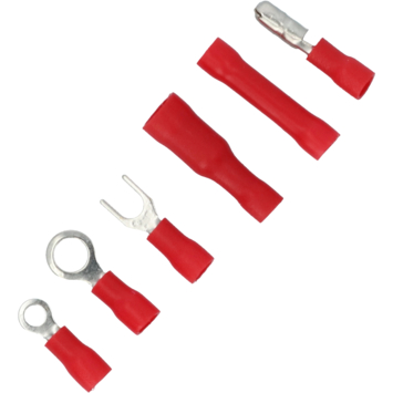 Carpoint Lot de 100 cosses de câble avec 12 types différents de cosses de câble bleues et rouges. Cosses de câble rouges adaptées aux fils d'épaisseur 0,5-1,5 mm² et bleues aux fils d'épaisseur 1,5-2,5 mm². Les cosses de câble sont faciles à installer avec une pince à cosses de câble (non incluse).