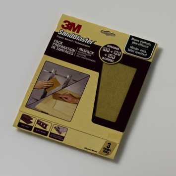 3M Sandblaster propose des abrasifs flexibles d'une grande efficacité. Le papier de verre mauve grain 100,120 et 150 (3 pièces) permet de travailler simultanément sur différents types de surface.