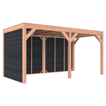 Cet auvent au design moderne offre un équilibre parfait entre esthétique et fonctionnalité. Les dimensions sont de 244,8 cm de hauteur, 495,4 cm de largeur et 254,9 cm de profondeur et la hauteur de passage est de 224 cm. Aspect naturel, belle qualité.Les murs sont recouverts de clins suédois noirs et la construction est en Douglas non traité avec des montants robustes de 12x12 cm.Le choix du bois Douglas non traité offre un aspect authentique et garantit également une longue durée de vie.Prêt pour un avenir vert : cet abri de jardin au design moderne est spécialement conçu pour supporter des panneaux solaires ou un toit en sedum. Cela fait de cet auvent un ajout durable et respectueux de l'environnement.Installation Grâce à la description de construction claire, aux matériaux de montage fournis et aux pièces découpées sur mesure, l'installation de cet auvent de jardin est un travail réalisable pour tout bricoleur moyen. Revêtement de toit : Nous recommandons d'équiper cet auvent Douglas d'un revêtement de toit en EPDM pour un toit sans fuite (remarque : doit être commandé séparément).Entretien : Lors de l'achat d'un auvent, l'entretien est un point d'attention... Avec le bois Douglas, vous vous en sortez bien, car le Douglas est une essence de bois résistante. Elle peut facilement durer 10 à 15 ans sans traitement supplémentaire. Pour prolonger la durée de vie maximale, vous pouvez utiliser une lasure spéciale Douglas ou de l'huile Douglas et renouveler le traitement tous les 2 ans.
