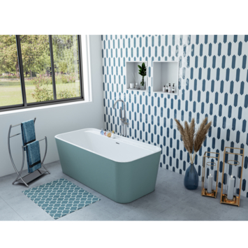 Avec ses finitions tendances, la baignoire autoportante Kolora vous apportera style et confort. Cette baignoire îlot en vert mat à l’extérieur et blanc à l’intérieur, confère un look incontestablement moderne à votre salle de bain.