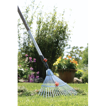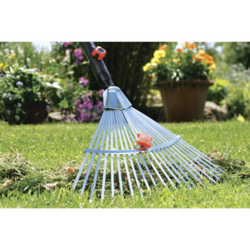 Le balai à gazon réglable combisystem Gardena est parfait pour ratisser les feuilles, l'herbe coupée et autres déchets de jardin. La largeur entre les dents souples en acier zingué est réglable facilement. Sa largeur utile de 30 à 50 cm permet de ratisser des matériaux de petite ou plus grande taille.