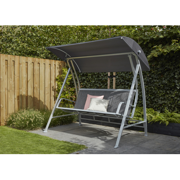 À la fois confortable et intemporelle, la balancelle Montréal vous donnera l’occasion de vous détendre dans le jardin tout au long de l’année. Cette généreuse balancelle de couleur anthracite accueille 3 personnes. Réalisée en acier, elle est ultra robuste. L’assise est en textilène, une matière à la fois douce, résistante et facile à entretenir et à séchage rapide pour plus de confort. La balancelle est dotée d’un pare-soleil qui protège des rayons de l’astre du jour ainsi que des petites ondées.