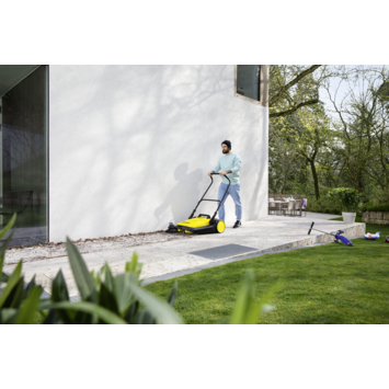 Que ce soit au printemps, en été, en automne ou en hiver, la nouvelle balayeuse Kärcher S 6 est idéale pour nettoyer toute l'année autour de la maison et du jardin. Grâce à la puissante brosse à rouleaux, à la brosse latérale et à une largeur de balayage totale de 670 mm, l'appareil balaie sans effort des surfaces allant jusqu'à 2 500 m² par heure. La poignée de poussée ergonomique peut être réglée sur deux positions sans se pencher et s'adapte de manière optimale à la taille de l'utilisateur. Les déchets sont collectés directement dans la poubelle de 38 litres, vous ne vous salissez donc pas les mains en la vidant. Un avantage supplémentaire est le réglage en hauteur de la brosse latérale, qui permet d'ajuster la pression de contact avec les déchets pour des résultats de balayage optimaux. Le S 6 peut être entièrement plié grâce à un repose-pieds sur le cadre et rangé de manière peu encombrante. De plus, la balayeuse est rapidement prête à l'emploi grâce au montage sans outil de la brosse latérale.