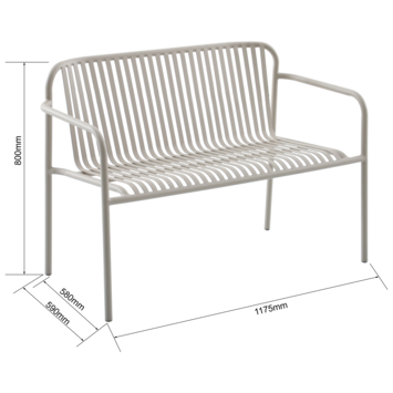 Le banc de jardin Sanne beige offre immédiatement une assise agréable dans votre jardin ou sur votre terrasse. Avec une largeur d’assise de 98,5 cm, deux personnes peuvent s’y installer confortablement pour se détendre, lire ou simplement profiter de l’extérieur.