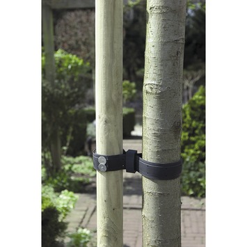 Utilisez cette bande de tuteurage en caoutchouc de 90 sur 3,8 cm (2 pièces) pour fixer un jeune plant à un autre arbre ou un poteau en bois pour qu'il puisse pousser bien droit. Tenons inclus pour fixer la bande au support.