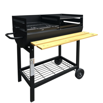 Le barbecue Tahiti noir fera le bonheur des grands groupes et des grands amateurs de barbecue. Ce barbecue rectangulaire avec châssis en inox comprend 4 grilles et est facile à déplacer. Avec étagère en bois pratique, poignée, 2 roulettes et grille dans le bas pour déposer ingrédients et ustensiles.
