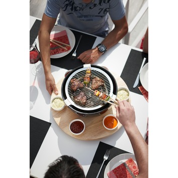 Le barbecue à charbon de bois Joya de couleur blanche est un barbecue de table élégant, moderne et compact avec une surface de cuisson de 35 cm. Convient pour 4 à 6 personnes. Très pratique en voyage comme chez soi ou au jardin.