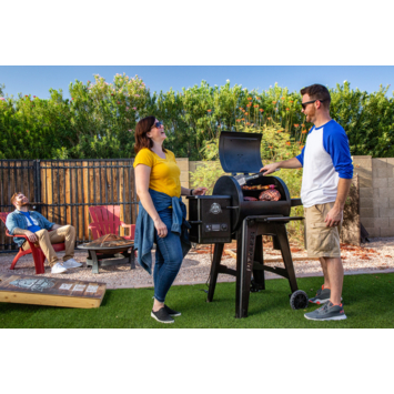 Le barbecue Pit Boss Navigator 550 vous procure la saveur du bois véritable. Ce barbecue design et sophistiqué offre tout ce que vous pouvez attendre d'un gril de haute qualité. La grande surface de cuisson, capable de préparer de délicieux repas pour 8 personnes sur 2 niveaux. Grâce à une technologie de grillade avancée et aux granulés alimentaires de bois dur 100 % naturel, profitez de caractéristiques « Bigger, Hotter, Heavier » qui ne peuvent être obtenues qu'avec un barbecue Pit Boss. Le Navigator 550 offre une multitude de méthodes de cuisson : fumer, cuire, braiser, rôtir, griller, saisir vos différents aliments et griller au charbon de bois. Réglez la température de 82° à 260°C et obtenez une chaleur directe ou indirecte instantanée grâce à la plaque de diffusion de chaleur brevetée, réglable par levier. Ce système passe facilement d’une cuisson indirecte à une cuisson directe afin d'atteindre des températures de saisie proches de 535 °C. Les 2 grilles de cuisson en fonte émaillée vous garantissent une bonne répartition de la chaleur sans que les aliments n'adhèrent. Il est très facile de retourner proprement les grillades, les brochettes et des saucisses. Doté de 2 sondes, 1 sonde intégrée qui régule la température interne et 1 sonde externe fournie qui se branche sur le panneau de contrôle numérique afin de suivre la cuisson à cœur des aliments. Ce suivi permet des préparations et des résultats ultra précis sans avoir à ouvrir le couvercle !