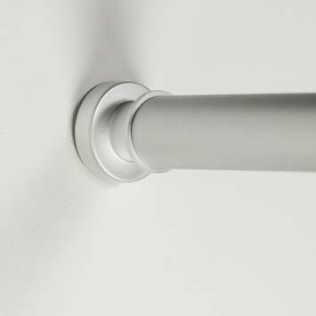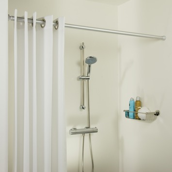 Makkelijk op maat te maken, goede klemkracht voor een extra lang douchegordijn. Mooie kleur, zeker als je niet van hoogglas of wit plastic douchestangen houd.